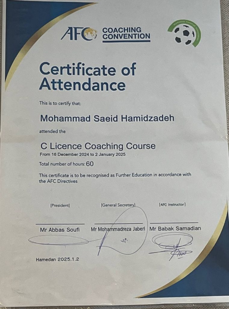- 🥈مقام دوم مسابقات IFFC قهرمانی کشور فوتبال نمایشی (تهران ۱۳۹۸)